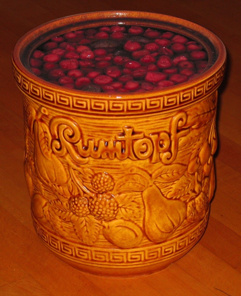 A “Rumtoph” which literally means “Rum-pot”. And a traditional one!! Mum has one and I have been looking for a similar one for years and finally found one. It is used, to soak and keep layers of dried fruits with rum. It is how, I make my Christmas stollen. I soak the fruit in rum for many weeks or even months. I can’t wait to start using this one.