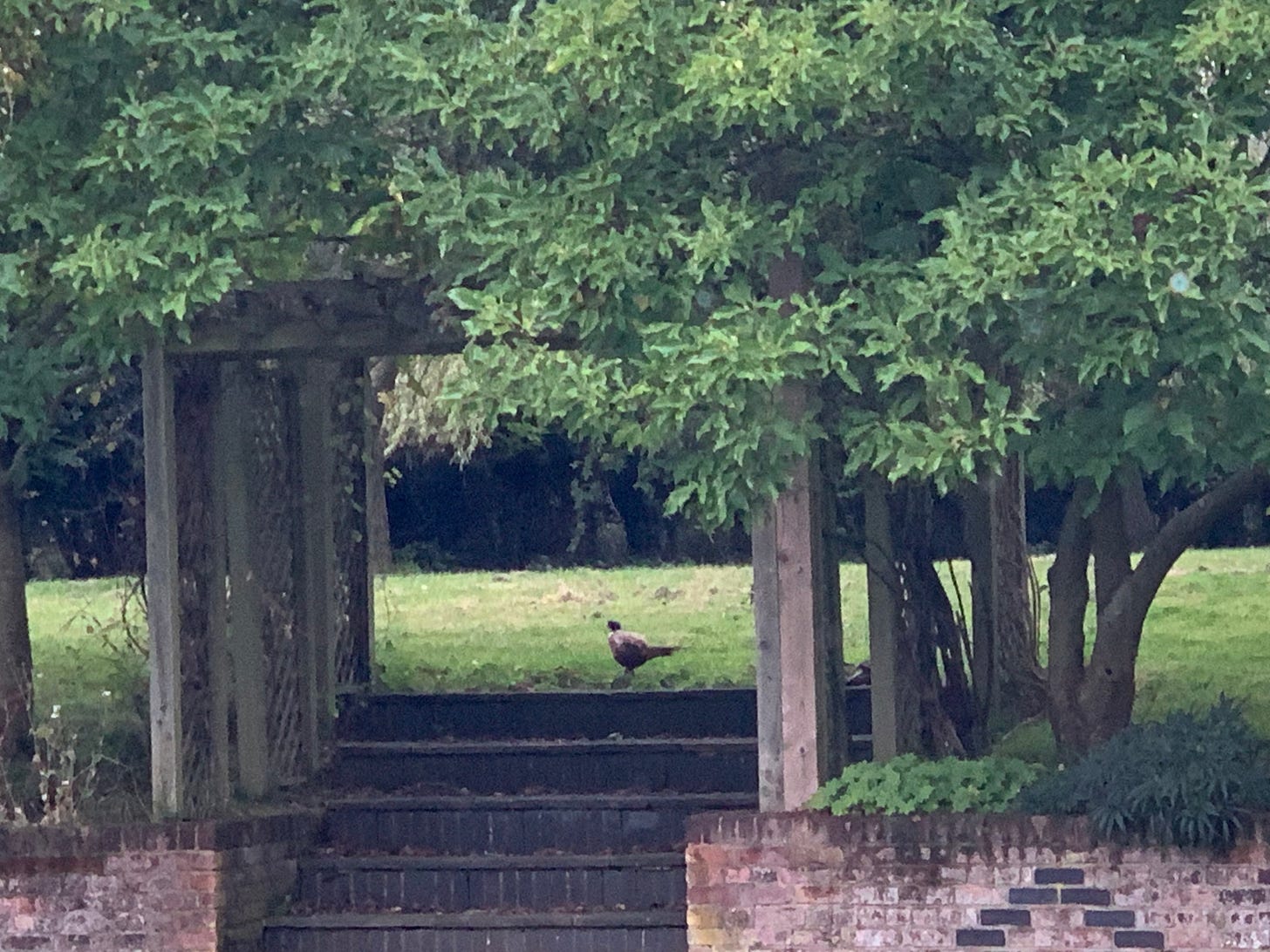 And finally, our pheasant who I pretend, is always the same one, came to visit yet again, for the first time in a while. He always looks so peaceful!